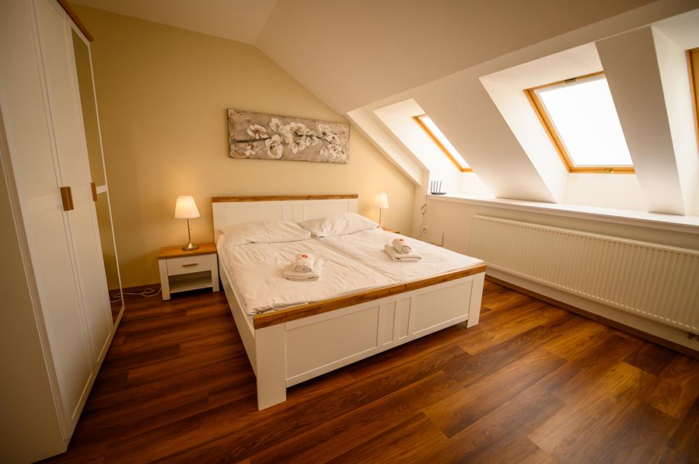 Vybavení: apartmán pro 4 osoby s možností jedné přistýlky- dvě dvoulůžkové ložnice s manželskou postelí, možnost 1 přistýlky- plně vybavená kuchyň (lednice, sporák, mikr. trouba, rychlovarná konvice, …)- koupelna s vanou, WC- 62 m2