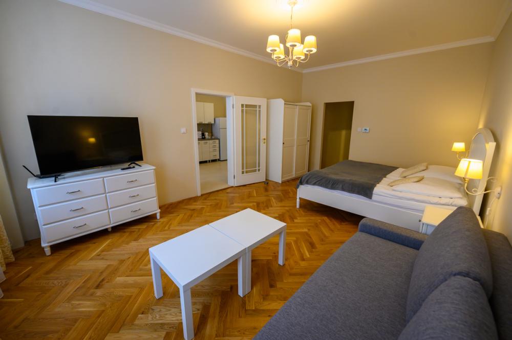 Vzdálenosti: Valdštejnovo náměstí 20 m, Aquacentrum 700 m, restaurace 50 m, koupaliště 300 m, autobusové stanoviště 300 m