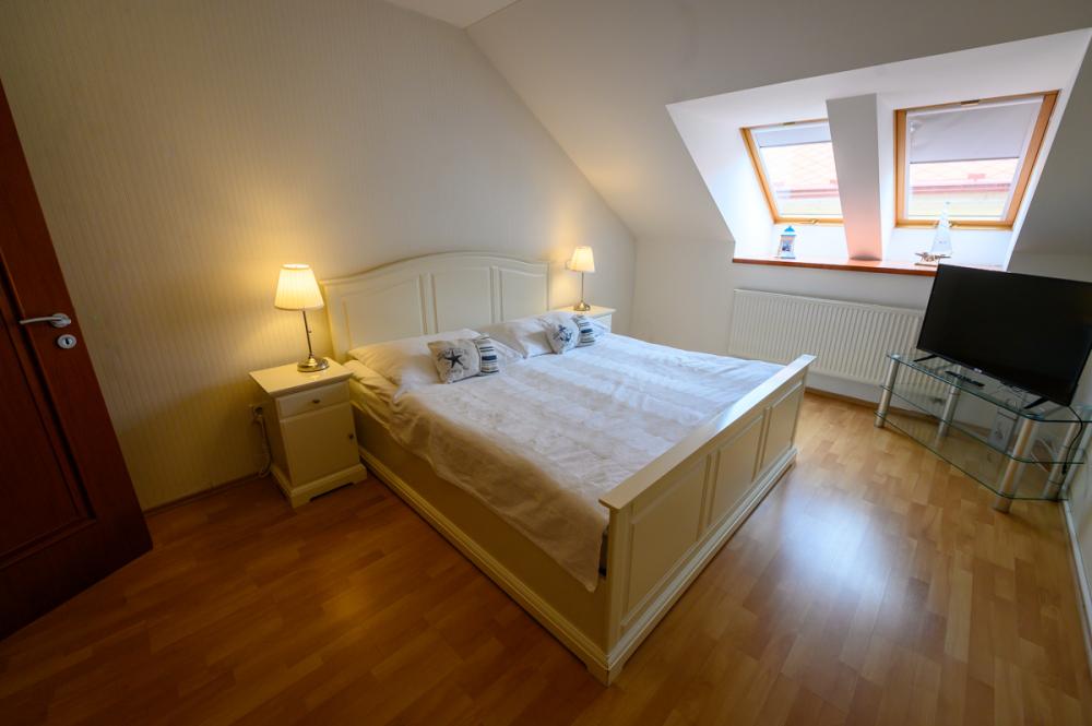 Vybavení: apartmán pro 5 osob, ložnice s manželským lůžkem a rozkládacím gaučem (šířka 140 cm). Plně vybavená kuchyň - myčka, lednice, mikrovlnka, trouba - rozkládací gauč (šířka 140 cm). Koupelna se sprchovým koutem a pračkou.